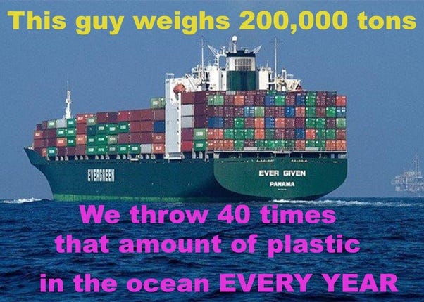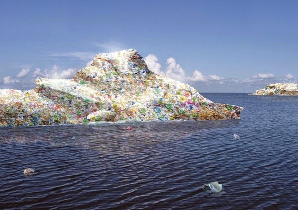 This graphic above refers to “The Garbage Patch,” an island of plastic floating in the Pacific Ocean.