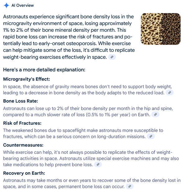 Every month in space, an astronaut loses the equivalent of what a senior on Earth loses every couple of years.