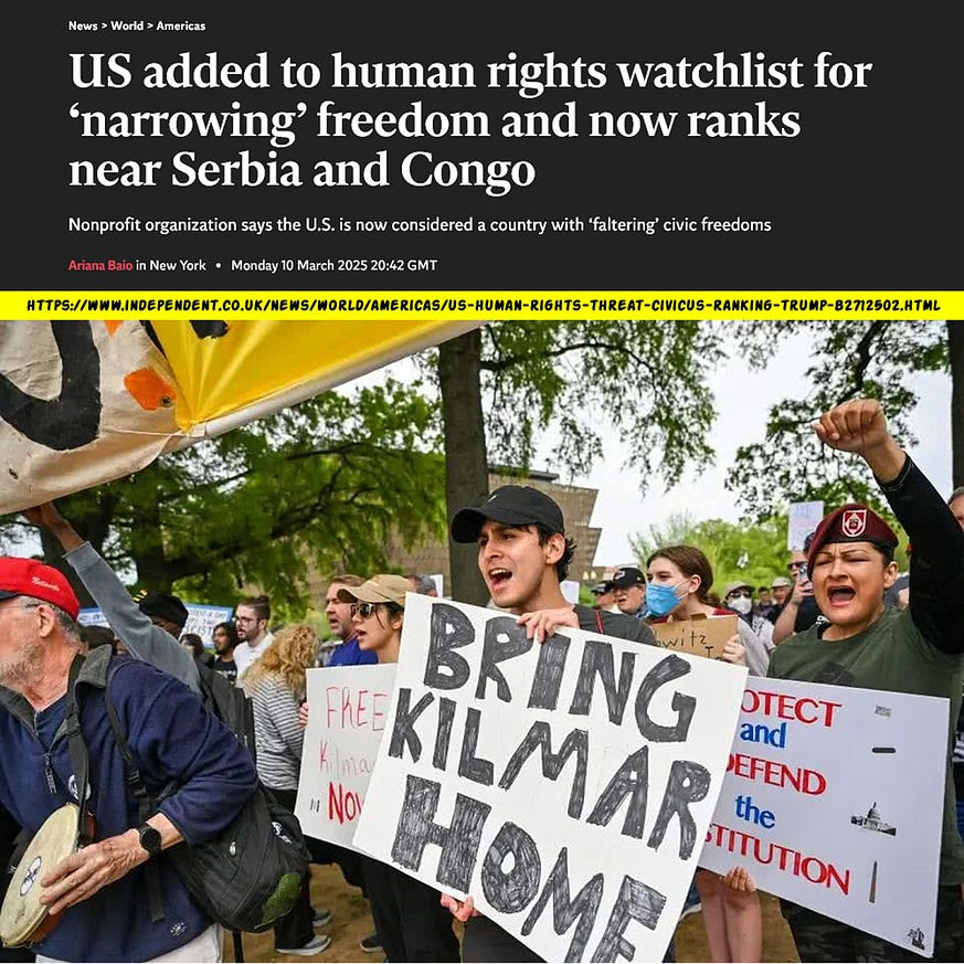 A bonus question you could add is, “Why does the Trump administration commit human rights violations against American citizens by ignoring an 800-year-old legal precedent from the Magna Carta that’s more than three times as old as the U.S.?”