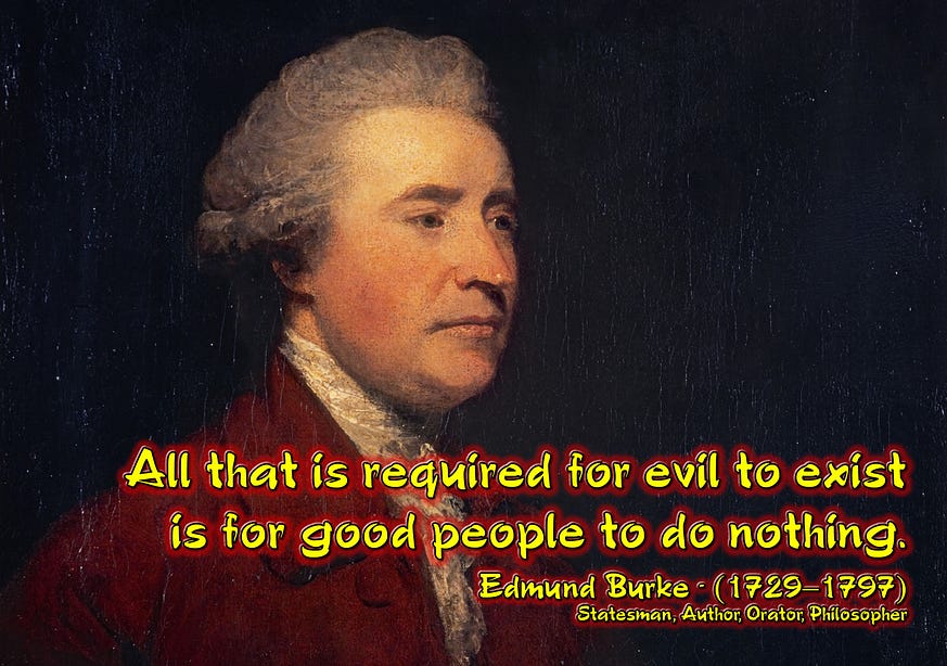 “All that is required for evil to exist is for good people to do nothing.” — Edmund Burke
