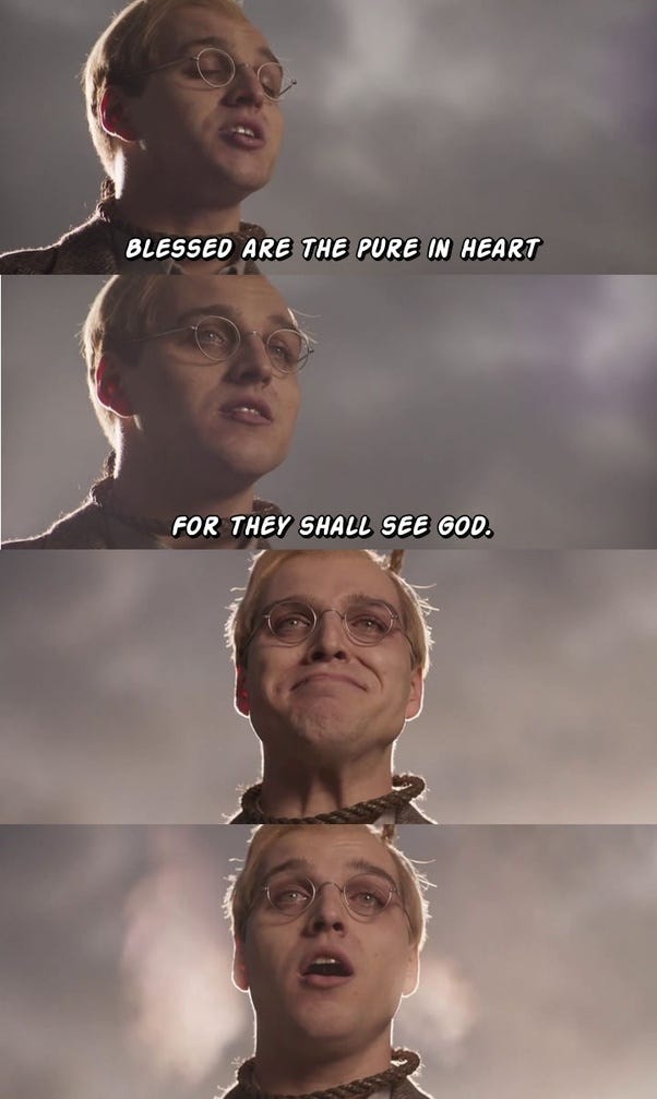 Self-sacrifice within this context is the canary in the coal mine warning the rest of humanity that death is on its way and alerting the people that they are facing a choice to serve a higher purpose than their fleeting whims or be sacrificed by parasitic forces as fodder for the conditions demanding their blood.