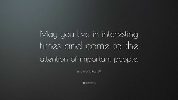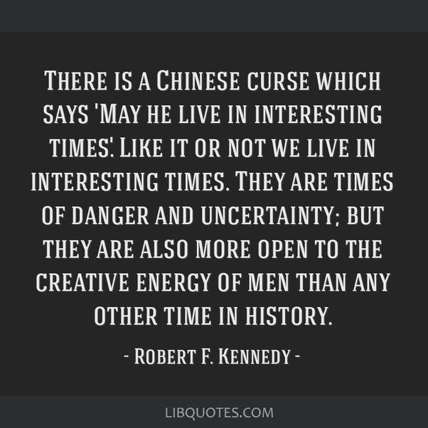 There are many different ways to perceive one’s challenges, and in this case, it appears to me the best way to represent this and the challenges we face today are embodied with an ancient curse: